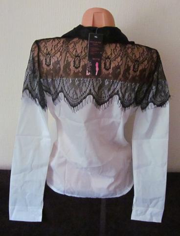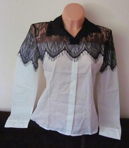 Nauji marškinukai, viršus kaip gipiūrinis, balta dalis - šifonas. Su etikete. Dydį rašo XXXL, bet mažinti, tinka XL/XXL. Ilgis 63 cm, krūtinės apimtis 57x2 cm, rankovės ilgis nuo peties linijos 66 cm.