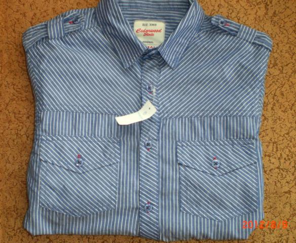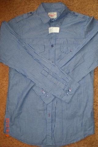 Nauji, madingi,iš UK, su skoningomis detalėmis marškiniai. Sagučių kilpos išsiuvinėtos raudonu siūlu, kas suteikia ryškesnį akcentą. Marškinėlių dydis rašo EX SMALL. Išmatavimai: rankovės ilgis 64,5cm, marškinių ilgis 72cm, pečių plotis 40,5cm, krūtinės plotis 46cm.