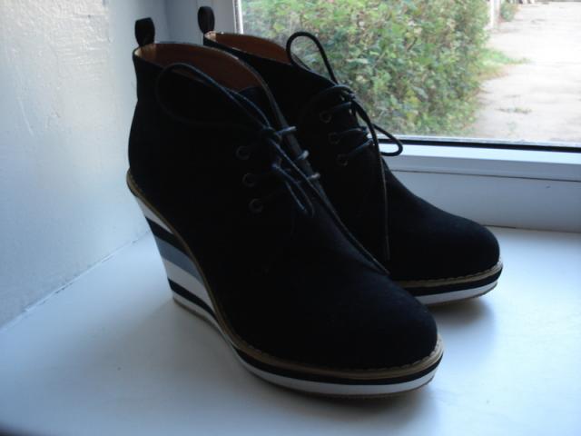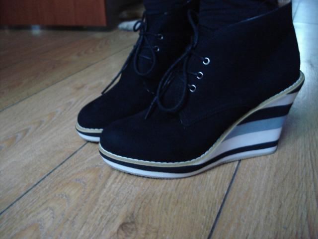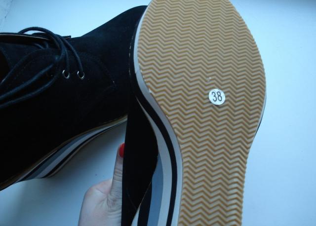 Naujos platformos, verstos odos - zomšos, vidus - oda. labai patogus, bet man per dideli. platformos aukštis - 10cm, priekinės - 2cm.