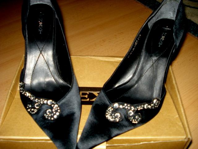 Parvežti iš UK, NEXT firmos, kelis kartus tik mūvėti bateliai. Jie juodos spalvos ir yra pagražinti deimantukais, kaip ir matote nuotraukose :)