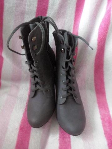 Nauji pilki odinukai aukštakulniai aulinukai, suvarstomi ir tuo pačiu su užtrauktuku :) šiektiek militaristinio/karinio stiliaus, labai fainučiai :) Su oda.