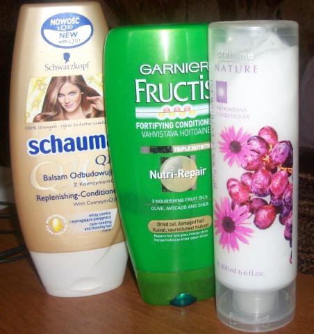 Nauji plauku balzamai: 1.- Plaukų balzamas SCHAUMA Q10, ploniems plaukams, 200 ml 2.- Fructis Nutri Repair-Issausejusiu ir pazeistu plauku balzamas ,200ml 3.- Nature plauku balzamas, padeda plaukams atsigauti,200ml