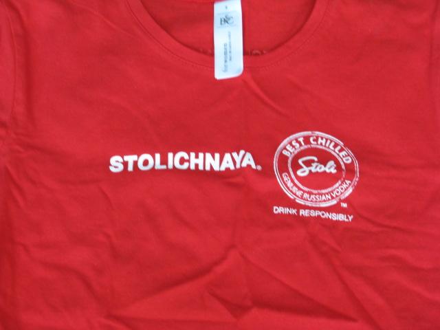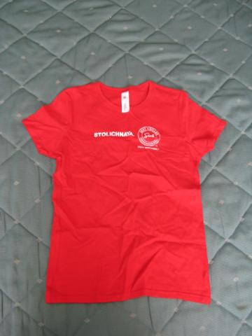Nauji moteriski marškinėliai. S dydis. Raudona spalva. Užrašas Stolichnaja. Kaip tik vasarai !