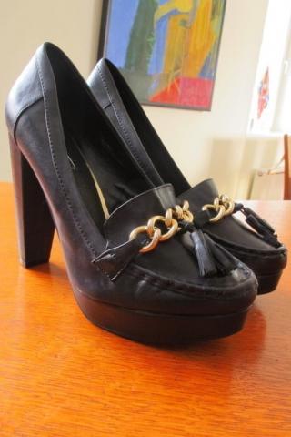 nauji tobuli tikros odos bateliai su aukso spalvos grandine. Kulno aukstis 13,5cm. Vidpadis 27cm