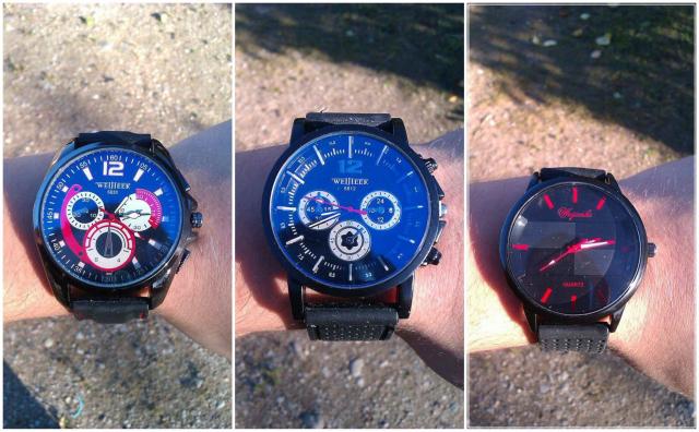 1. 10.50€ *Mineralinis, keičiantis spalvą, stikliukas. *Kvarcinis mechanizmas. *Metalinis korpusas - 46mm (puikiai jaučiasi ant rankos). *Silikoninė apyrankė. 2. 10€ *Mineralinis, keičiantis spalvą, stikliukas. *Kvarcinis mechanizmas. *Metalinis korpusas - 45mm (puikiai jaučiasi ant rankos). *Silikoninė apyrankė. 3. 10€ *Kvarcinis mechanizmas. *Metalinis korpusas - 45mm (puikiai jaučiasi ant rankos). *Silikoninė apyrankė. Raseiniai, siunčiu registruotu paštu. Siuntimo išlai