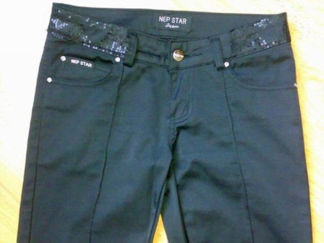 Naujos, stilingos kelnės. Siaurėjančios, žemintu liemeniu, su kantu.