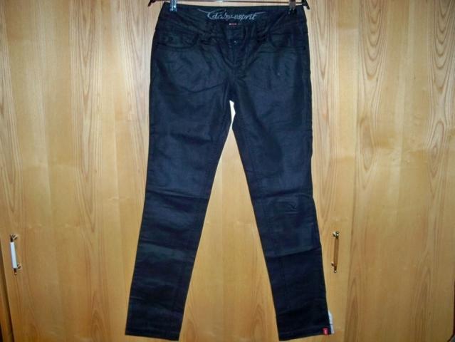 Visiškai naujos juodos spalvos siauros kelnės. Atsisiunčiau internetu. Vienintelis trūkumas -pamesta saga.Galima bet kokią įsisiųti. Kelnių ilgis 100 cm, liemens apimtis 78 cm, per klubus 92 cm, nuo klyno 80 cm.99 proc.medvilnė, 1 proc.elastanas NEMAINAU