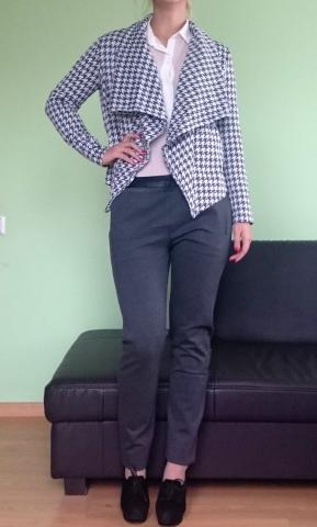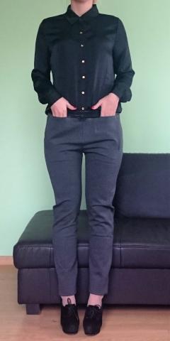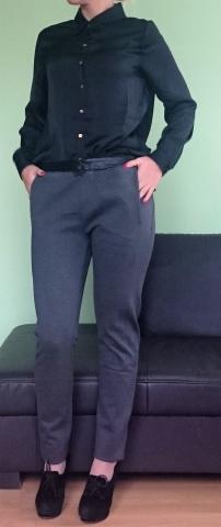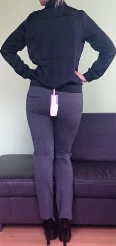 Klasiokinio tipo juodos spalvos kelnės. Dydis M - 38. Storos ir tamprios medžiagos, tikrai nepersišviečia ir neišryškina trukumų. Dvipusės kišenės - iš viršaus ir iš šono. Naujos su etiketėmis. Liemuo su guma. Nugaroje vienos kišenės imitacija.