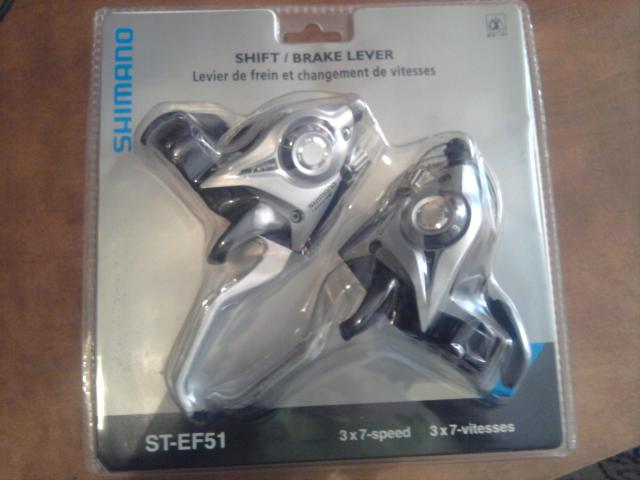 Perjungimo/stabdžių rankenėlių k-tas, ST-EF51(LL)2A sidabro spalvos 3X7pav., EZ-FIRE PLUS, V-tipo stabdžiams, 2-pirštų aliuminės, standaritiniai pavarų perjungimo ir stabdžių trosai.