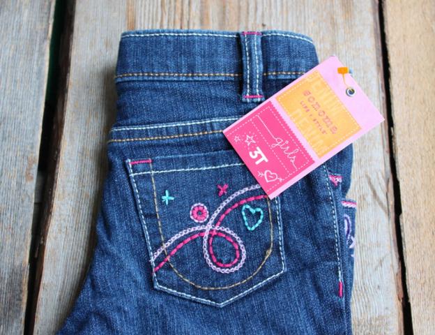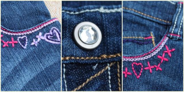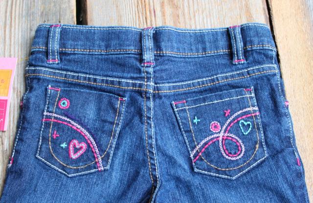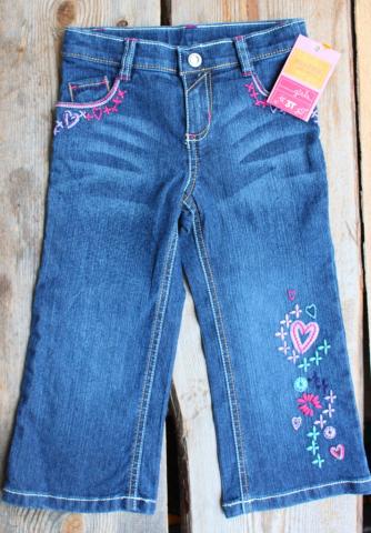 Gavome lauktuvių iš Amerikos, deja, su dydžiu nepataikė- jau per maži. Džiaugiamės, kad greit augame, bet vat naujus, amerikoniškus džinsus tenka pardavinėti :) Džinsai taip ir liko su nenuplėšta, originalia etikete, todėl labai tinkami puikai dovanai. Džinsiukai stilingi, labai kokybiški. Iškart į akis krenta originalūs papuošimai siuviniais. Jais puoštos ir kišenės, ir klešnės. Todėl toks rūbelis pavergs bet kurios mažos mergaitės širdį. Ir išskirs mažąją puošeivą iš minios mėlynų, paprastų džinsiukų.
