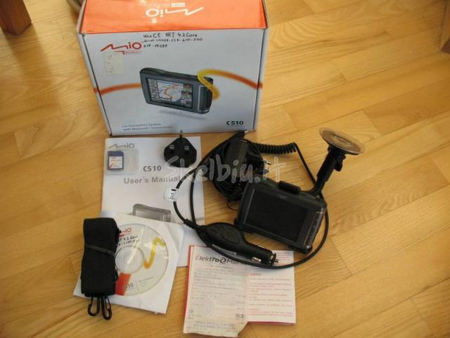 Pigiai parduodu, naudota, puikia navigacija MIO-C510 su IGO8 programa ir europos zemelapiais. Navigacija turi mp3 grotuva, nuotrauku perziuros funkcija, bei integruota tel. pokalbiams laisvu rankų įrangą. Pavadinimas: MIO-C510 Navigacija, turi laisvų rankų įranga. Samsung 700 MHz procesorius, 3.5"TFT (240x320), 65k spalvų, 128MB ROM ir 64MB RAM atmintinės, Windows Mobile 5.0, vidinis GPS SiRF Star III imtuvas su vidine antena, SD, MMC. WLAN - nėra, Bluetooth - yra. Turi MP3 grotuvo funkcija.