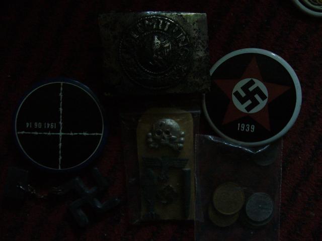Originali sagtis,mirties kaukole,swastika,monetos,du reprodukciniai bombu zenkliukai,ir kiti