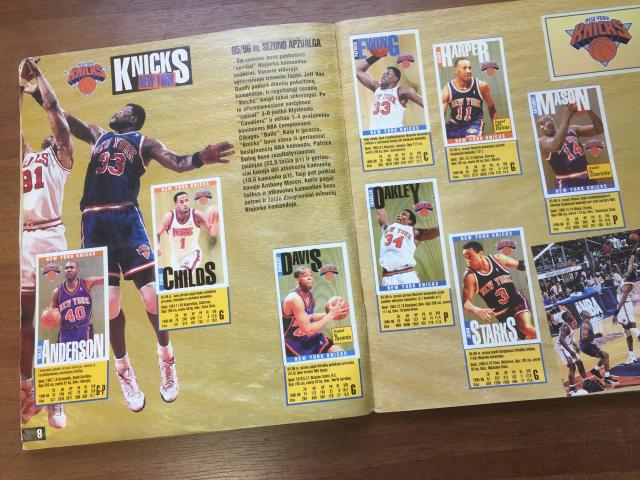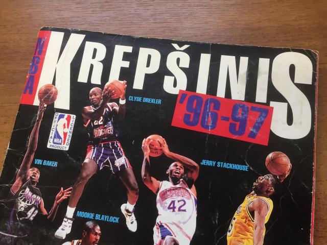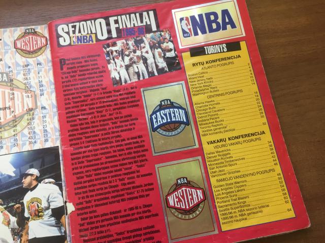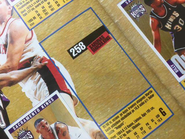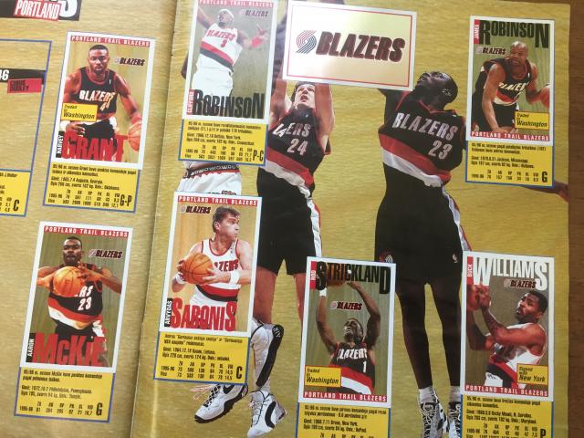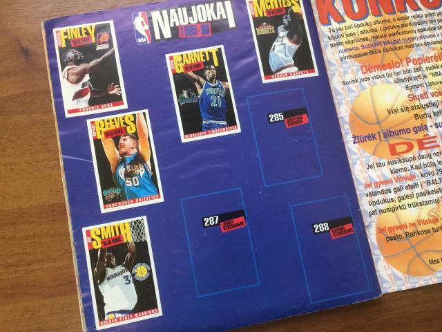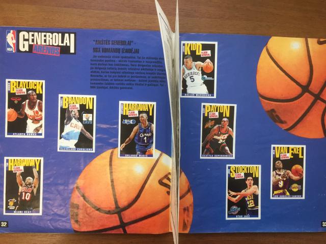 NBA Krepšinis 96-97 albumas. Beveik pilnas. Trūksta 27 lipdukų: 167, 168, 177, 182, 183, 186, 193, 197, 203, 209, 212, 213, 227, 230, 232, 236, 239, 244, 246, 256, 258, 263, 273, 277, 285, 287, 288. Yra A, Sabonis. Trūksta Š. Marčiulionio.