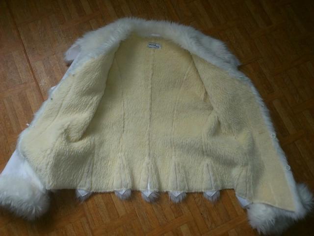ROSA firmos odiniai balti kailinukai deveti bet jokiu defektu ar plemu nera,silti lengvi puosnus kailinukai. M dydis didoki todel parduodu. Sudėtis Ilgis 70cm.,krutine 47cm.,lieuo 45cm.,rankoves uzlenkta 60cm,atlenkus 64cm.,tai rankoves galima uzlenkti ir atlenkti esant reikalui.