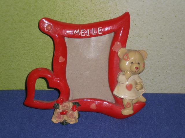 Nedidelis keramikinis nuotraukos rmeelis su meskiuku ir uzrasu meile