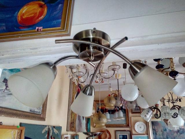 Nedidelis, kompaktiškas trijų lempų šviestuvas.