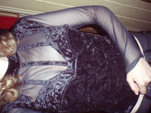 Neformalaus stiliaus palaidine, medziaga panasi i aksoma, svelni, vietomis ideta permatoma medziaga ;) palaidine praktiskai nauja ir labai myleta, deja, siuo metu per didele :) dydis m