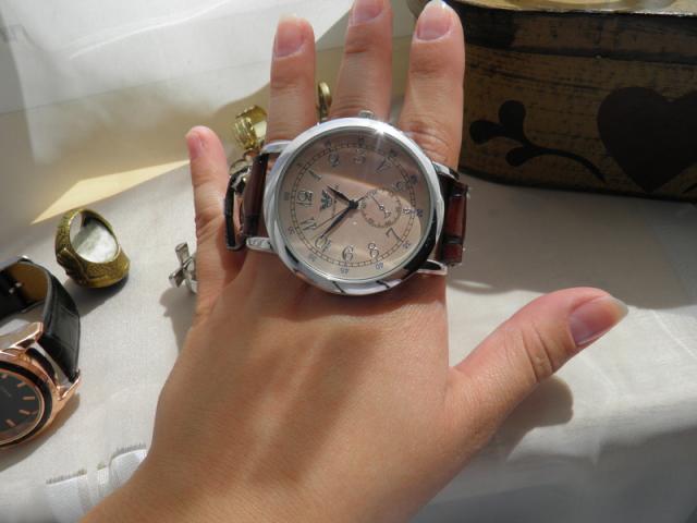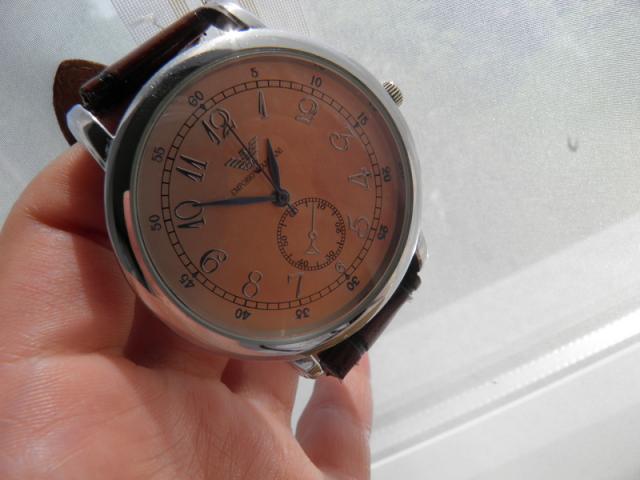Prabangiai atrodanti ARMANI laikrodžio kopija Yra labai kokybiška ir tvirta ,nes mokėti dideli pinigai.Tikros odos apyrankė,ARMANI inicialai tiek ant laikrodžio ,tiek ant jo dugnelio. Laikrodis sidabrinis,su ruda apyranke. Pirkta ne Lietuvoje. Gana didelis ir tinkantis prie visko. patrinta apyrankė(galima keisti ją).Daugiau defektų nėra.