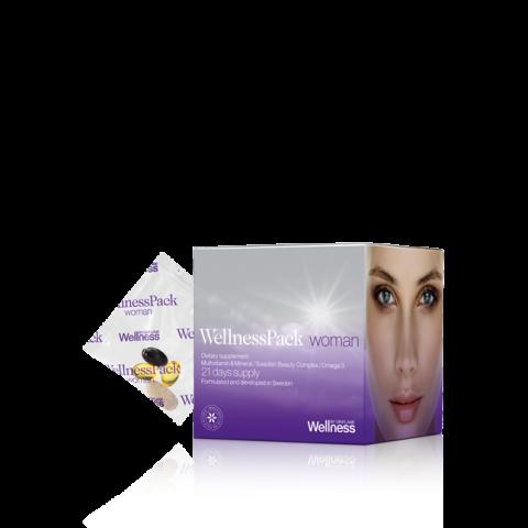 Pakuotėje-21 maišelis.Viename maišelyje yra:Omega 3- 2 kapsulės"Swedish Beauty"kompleksas (astaksantinas)- 1 kapsulė Multivitaminai ir mineralai moterims-1 tabletė.Tik vieno pakelio dėka pagerėja organizmo veikla,savijauta ir odos būklė.Kad būtumėte sveiki ir kasdien gerai jaustumėtės, vartokite po vieną „Wellness Pack“ moterims pakelį per dieną, po pagrindinio valgio.tel 862592417