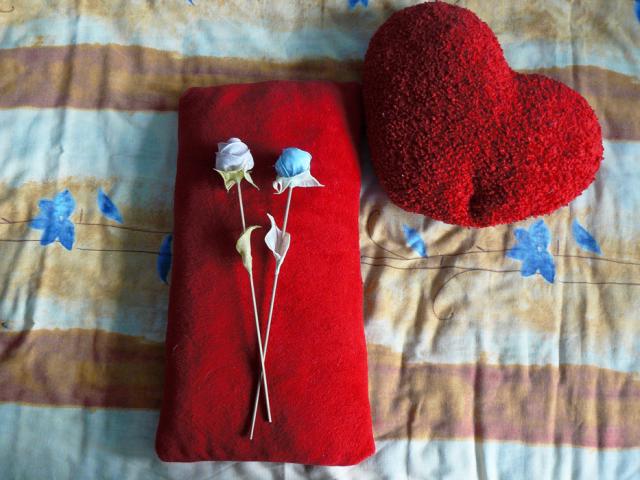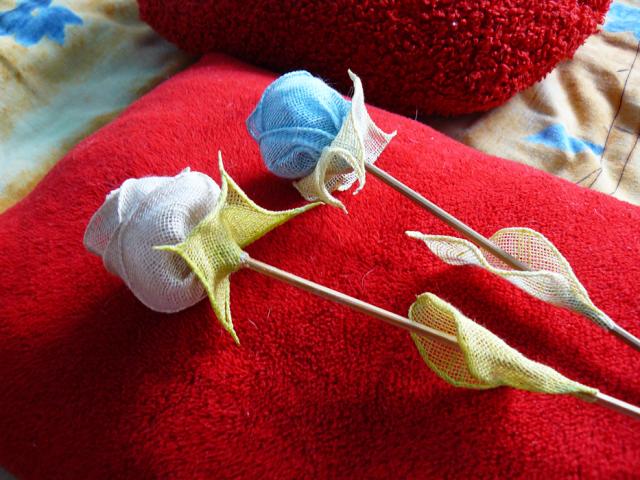 Iš mugės. Viena švelniai rožinė, kita mėlyna. Aukštis 32 cm.