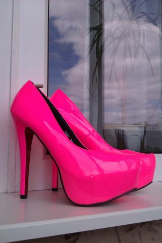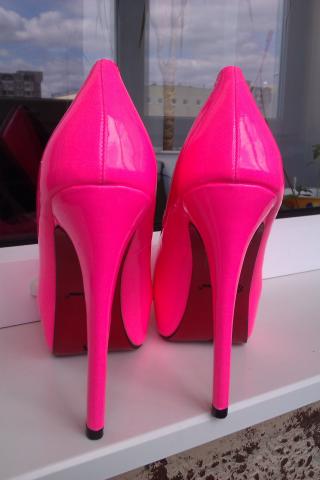 neoniai, lakuoti, spindintys is toli aukstakulniai, raudonu padu, kulnas 15cm, platforma 4cm. 39DYDIS