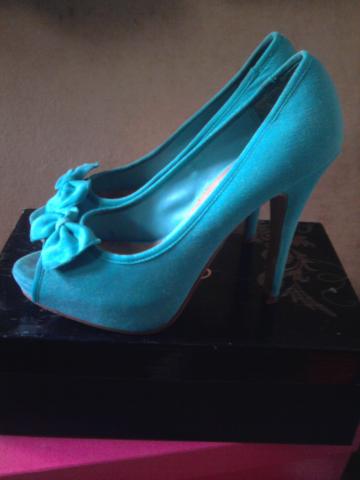 Aukštakulniai atsiųsti iš JAV. Visiškai nauji. Užsidėti tik vieną kartą. To užteko, kad suprasčiau jog man jie kiek mažoki. Kulniuko aukštis - 13cm Platformos - 2cm Dydis - 38.