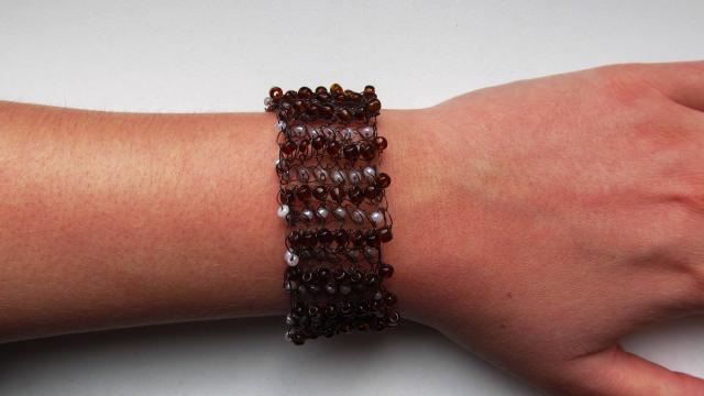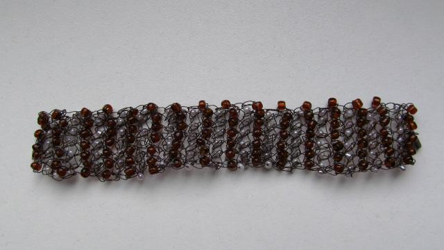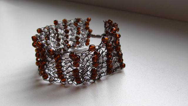Rankų darbo apyrankė, nerta iš vielos ir karoliukų