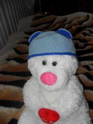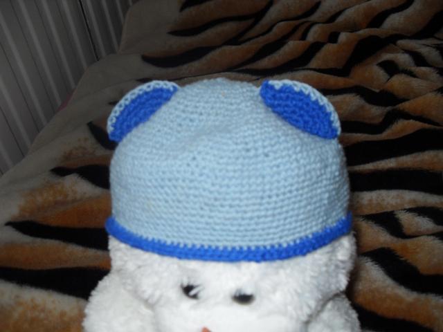 Rankų darbo kepurėlė mažyliui ar mažylei, galimos įvairios spalvos, gali būti su meškelio ausytėmis, su gėlytėmis, kiauraraštės arba tokios.