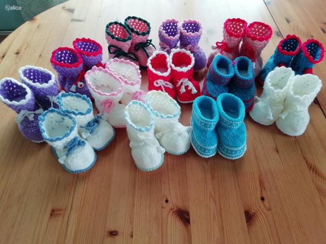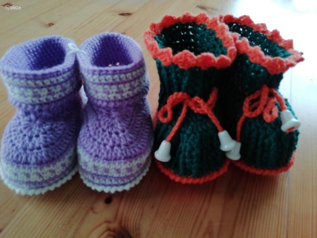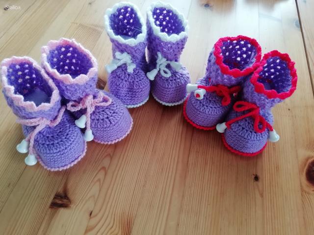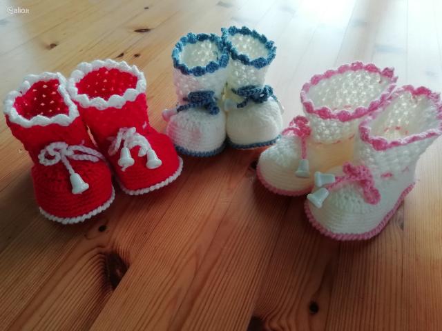 Nauji nerti batukai / tapukai kūdikiams iš vilnos ir akrilo siūlų. Rankų darbo gaminys. Batuko paduko dydis 10-14 cm. Nesmunka nuo kojos nes susiveržia raišteliu. Įvairių spalvų.
