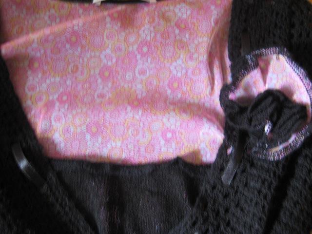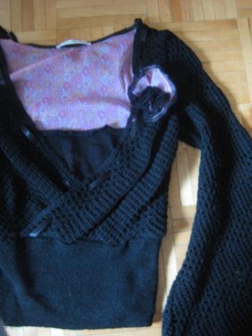 Naujas romantiško stiliaus nertinis, tamsiai rudos spalvos, vidinėje pusėje rožinė gėlėta medžiagytė. nėra ilgas.