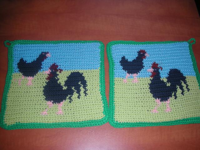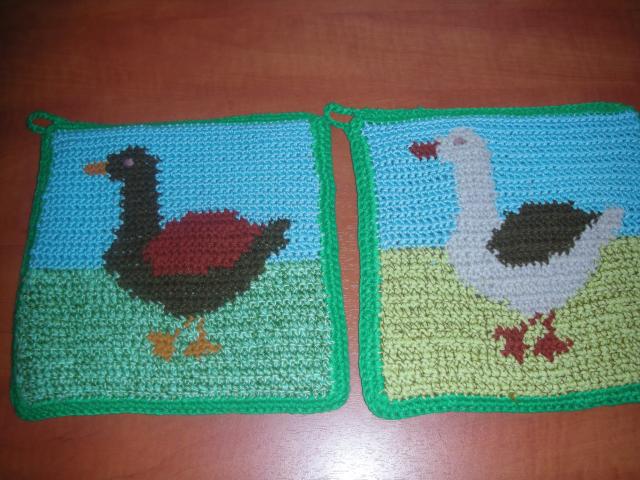 Vąšeliu nertos puodkėlės. Dvipusės, storos, tvirtos, su pašiltintu sluoksniu viduje. Yra įvairių raštų.