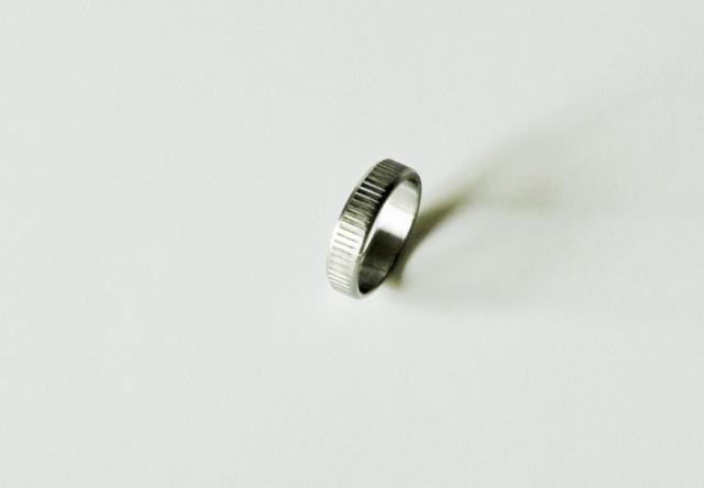 Nerūdijančio plieno žiedas su raštu, darytas pagal užsakymą. Vidinis skersmuo 17 mm. Mielai mainau į man patinkančius daiktus, mainams kaina gali būtų kiek didesnė, tarkimės. :)