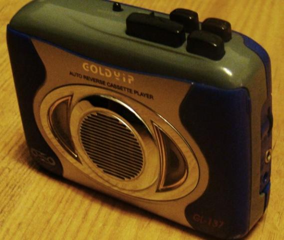 Nešiojamas kasečių grotuvas su išoriniu garsu.