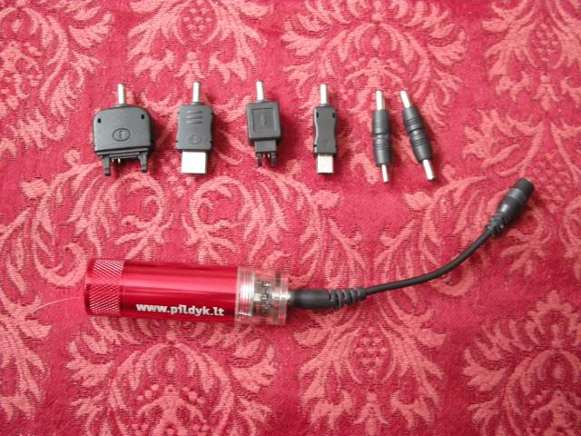 dedasi vienas AA elementas ir krauni telefona, yra 6 antgaliai, nokia sena , nokia nauja, se, motorola , samsungas , LG
