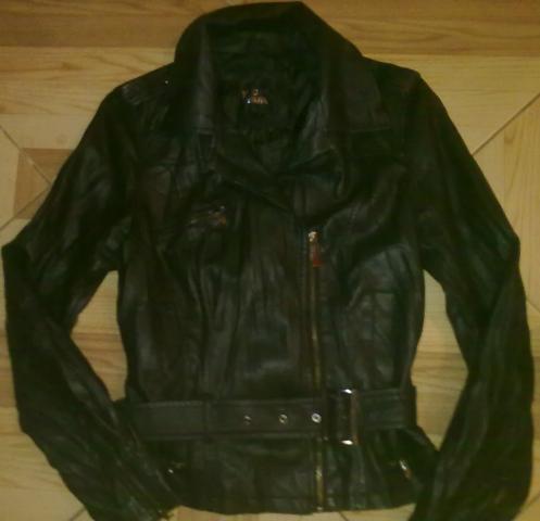 Glamžytos odos imitacijos striukytė, su užtrauktukais rankovėsi, jokių defektų 36d, bet tiks ir 34d, parduodu nes man didoka.