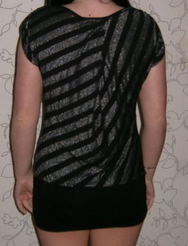 Labai grazi, be defektu, firmine. Idomi nugara, tunika laisvai krintanti apacia apsitempia, gerai ziurisi ir ant juodos golfytes. Dydi raso 14, bet nuotraukoje vilki mergina devinti 36/38 dydi. Audinys tamprus.