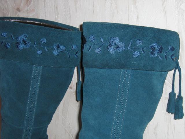 New look ilgaauliai batai 39 dydis, natūralios odos. Spalva : turkio. Be defektų, nedėvėti, nauji, atvešti iš anglijos. Batų aulas siekia iki kelių. Batų pado ilgis 24cm. Plotis plačiausioje vietoje:8cm. Kulniuko aukštis 5 cm.Padas pakietintas kulnas medinis todėl gerai nešiojasi. Tinka įvairioms progoms ir sezonams - puošnūs, viršuje dekoruoti.Kaina: 80 lt plius siuntimo išlaidos jei Jūs ne kaune. Siunčiu į visus miestus.