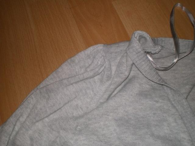 trumpas pilkas megztukas, papustom 3/4 rankovytem, su sagutem. s/m