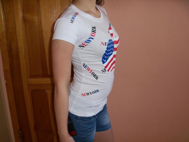 Nauja, new york maikutė. Dydis universalus. Manau tiktų S.M. M/L dydžiui. Ilgis 56,5 cm. Nuo pažasties iki pažasties 37cm. Tempsis iki 45cm.
