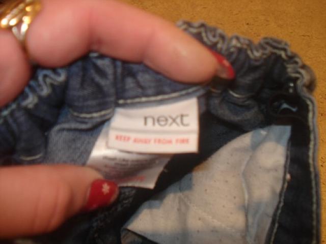 NEXT dzinsiukai 2-3 metams 20lt 2-3 metams 98cm; liemuo 23cm *2; taciau nugarytej gumyte tad tempiasi iki 29cm *2; bendras ilgis 56cm; vid.siule 36cm grazus modeliukas, tiesus;