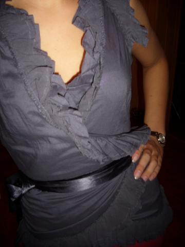 Labai grazi,koketiska,galima nesiot ivairiais budais,originalaus pasiuvimo,pilkos spalvos ir silkine juostele.