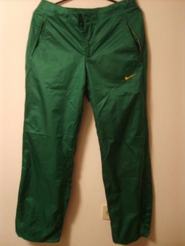 Sportinės kelnės, paviršius šiek tiek blizgus, geriausiai matosi 3-ioje nuotraukoje. Nike ženkliukas ir užtrauktukai aukso spalvos. Kelnių vidus itin švelnus, maloniai glaudžias prie kūno. 100% poliesterio.