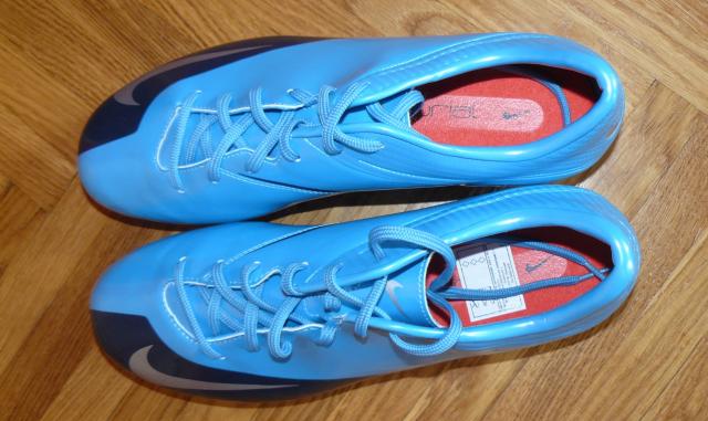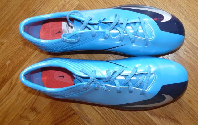 Visiskai nauji, nei karto nenesioti, sviesiai melynos spalvos nike mercurial futbolo bucai. Atsisiunciau is Anglijos, bet dydis netiko.Be dezes. Kaina galima derinti. Siunciu ir i kitus miestus. dydis: US - 11; UK - 10; EUR - 45