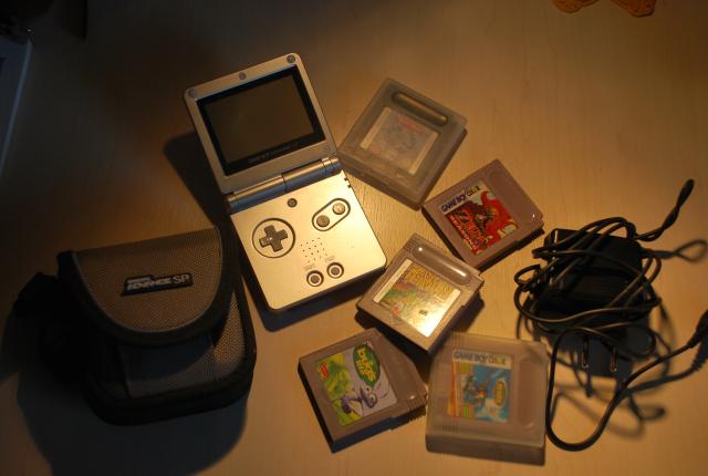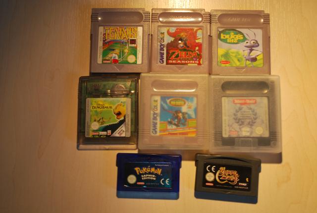 Viskas yra - dėklas, įkroviklis, veikiantis "Game Boy", pridedu visus diskelius. pats aparatas ganėtinai apibraižaliotas. asterix'o, bug's life ir dinosaur diskelių nėra.