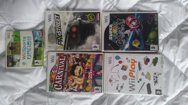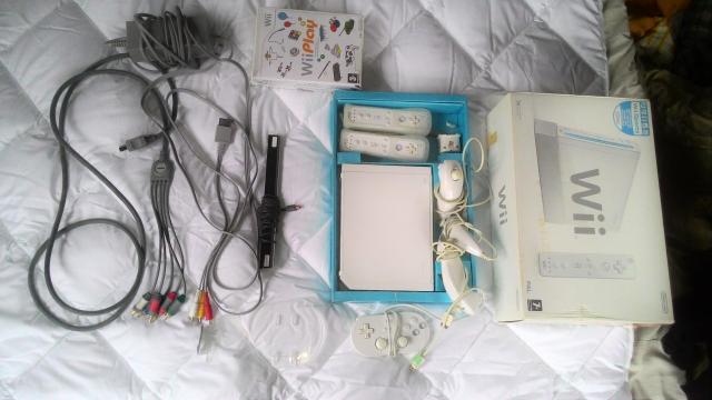 Nulaužta Nintendo wii konsolė, pilna komplektacija, visi laidai, AV HD laidas, 2 wiimote pulteliai ir 3 nunchackai, classic pultelis, motion plus priedas, 2 gb sd kortelė, 5 orginalūs žaidimai. Dar kažkur turėjau trečia wiimote, jei rasiu pridėsiu.