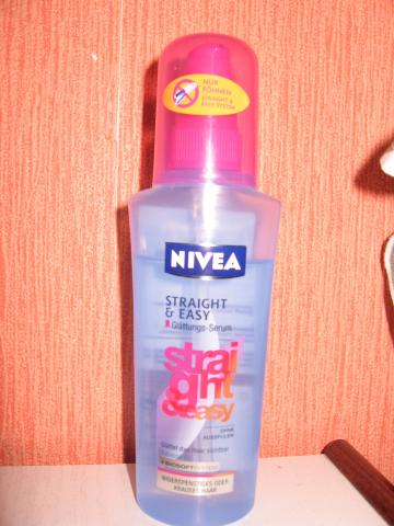 Naujas "Nivea" tiesinamasis serumas plaukams "Straight & Easy" - glotnina plaukus ir saugo juos nuo drėgmės, suteikia plaukams švelnumo ir lankstumo. taip pat maloniai kvepia. :) Išbandytas, tikrai veiksmingas. 100 ml. (Šiek tiek naudotas,matosi foto).