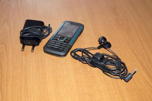 Nokia 5000d-2 telefonas su ausinemis ir pakroveju