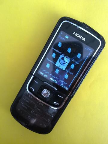 Nokia 8600d (RM-164) Originalas, Made In Germany. Lietuviškas meniu, tinka visos kortelės, nauja baterija. Defektas - nėra garso reguliavimo mygtuko (matosi nuotraukoj), bet garsas yra viskas groja ir veikia. Už 20 lt galiu pridėti 8800 dėžę su priedais.