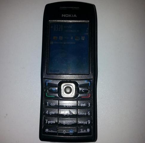 Gerai veikiantis telefonas. Dangtelis pasitrynęs. Nuplyšęs įjungimo mygtukas.