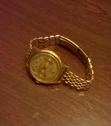 Vyriškas laikrodis,padengtas auksu,stovis geras.Yra defektas- sekundinė rodyklė yra palinkusi,stabdo laiką. Nemainau,tik pardavimui